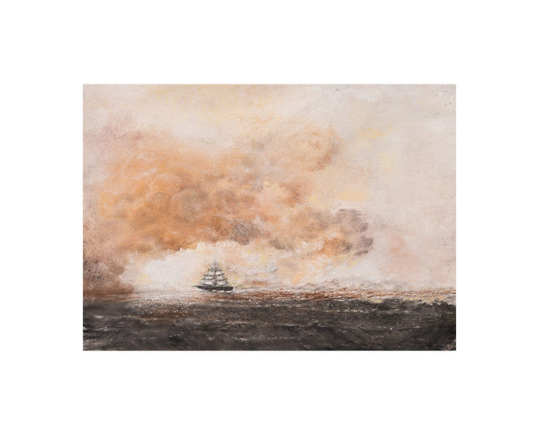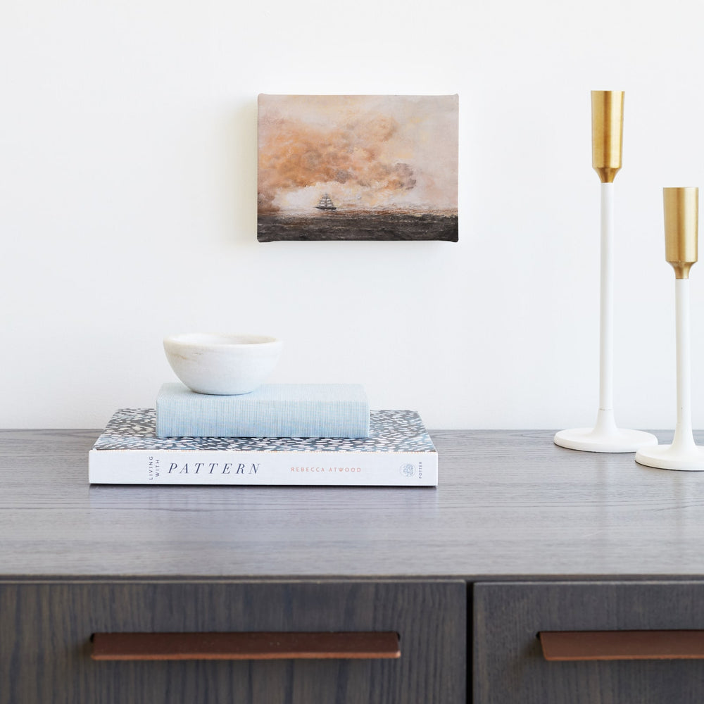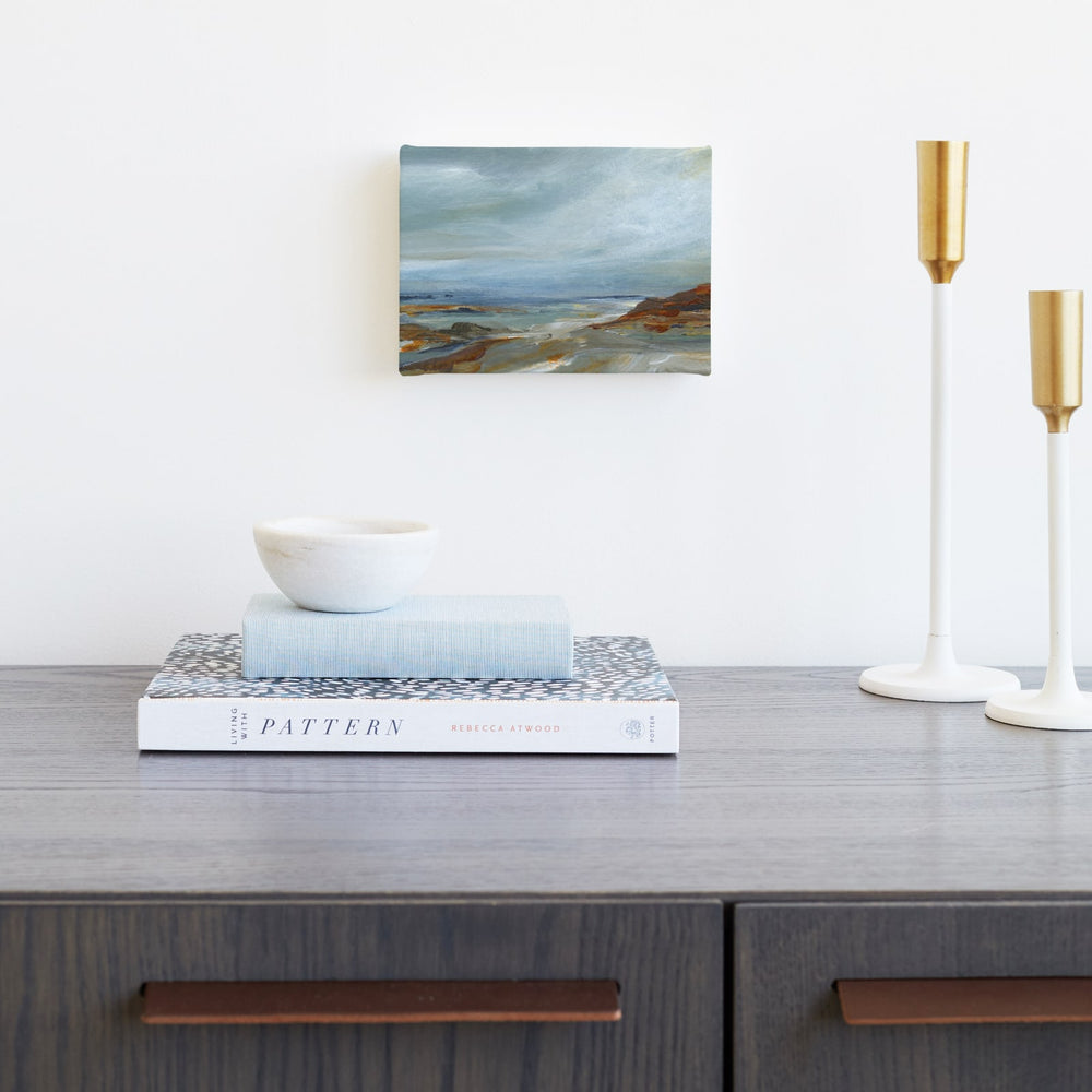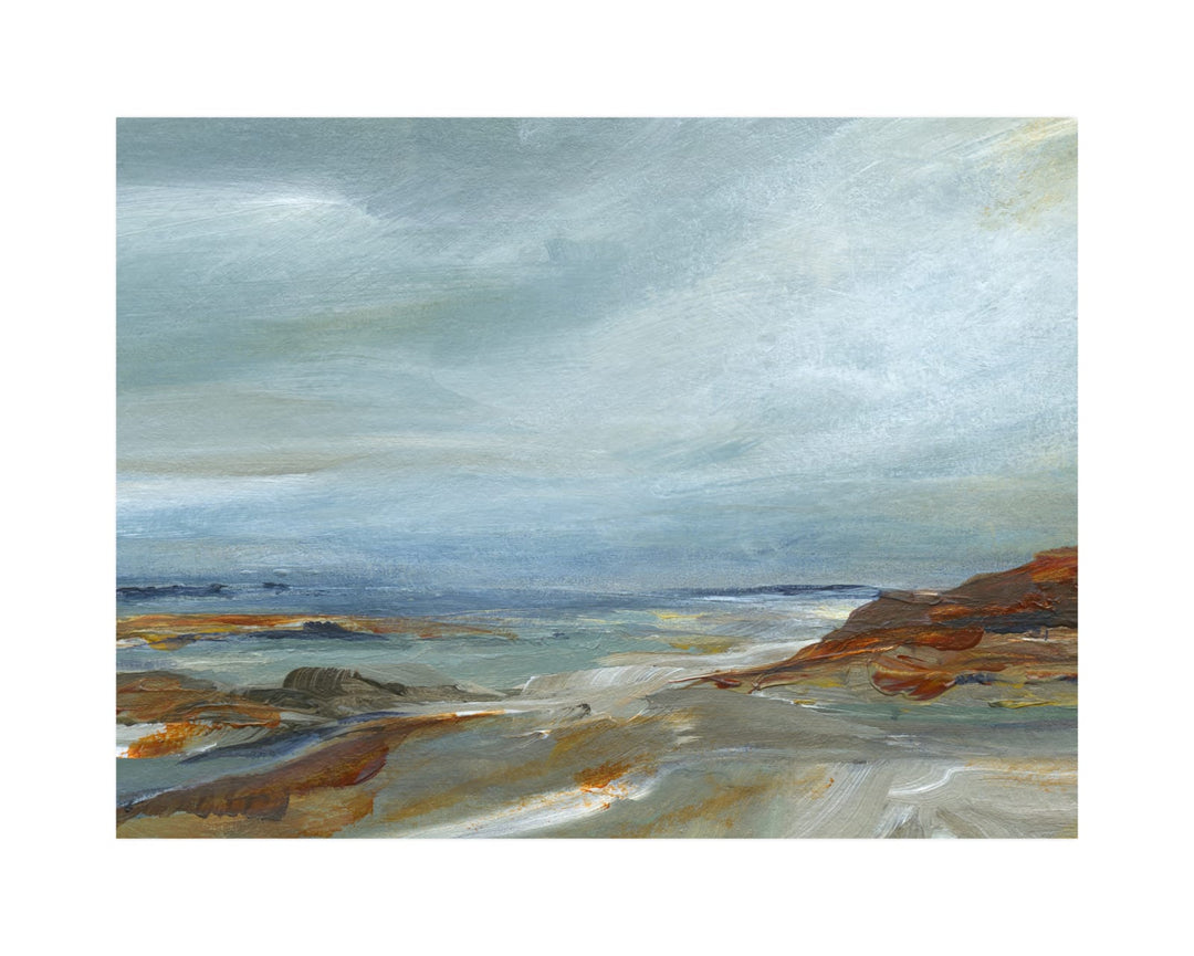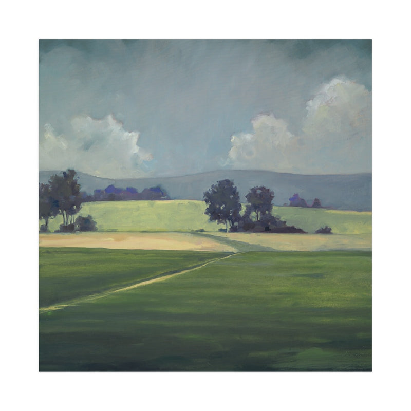 In this entrancing landscape, layers of subtle colour and depth lead you on a journey through the trees towards a peaceful blue sky. Originally painted in oil on canvas, this meditative print is an enticing invitation to a bright way forward.