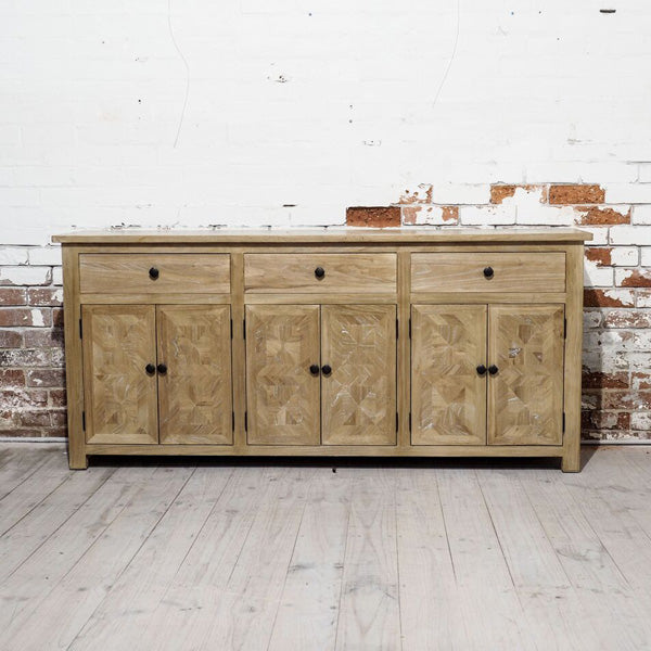 The Kensington Buffet is crafted from elm timber, which provides a unique level of strength and stability. The parquetry detailing is superbly crafted, creating an elegant finish that blends within any setting. The buffet provides ample storage, with plenty of room for all your dining needs.