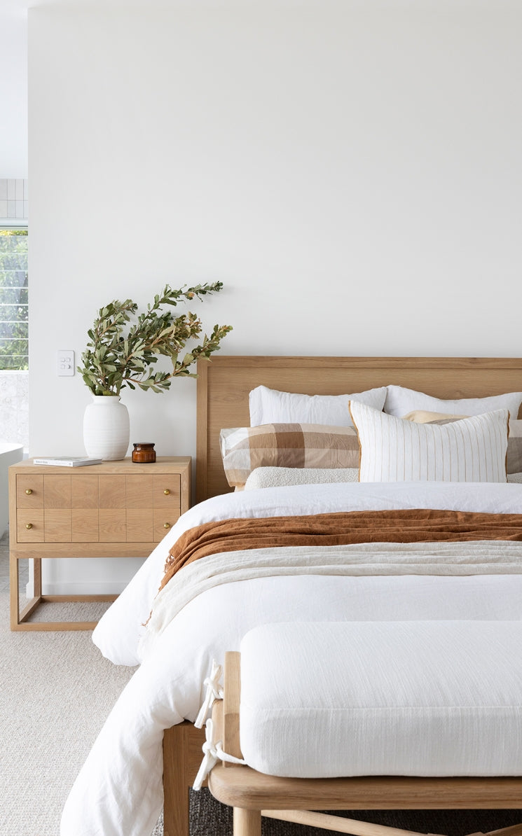Our Clover Bed in American Oak offers simple clean lines in a rich timber hue that's sure to elevate any bedroom.