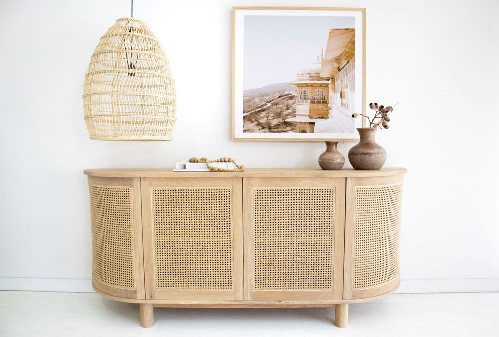 Handcrafted from sustainably sourced American Oak, the Luca Sideboard is the ideal piece for those looking for a timeless and enduring addition to their home. This smooth, raw sideboard is built to stand the test of time and is finished with an Osmo PolyX Raw Oil, perfect for adorning any interior with a touch of natural beauty. Push the magnetic locks to easily open the 4 doors and maintain adjustable shelving.