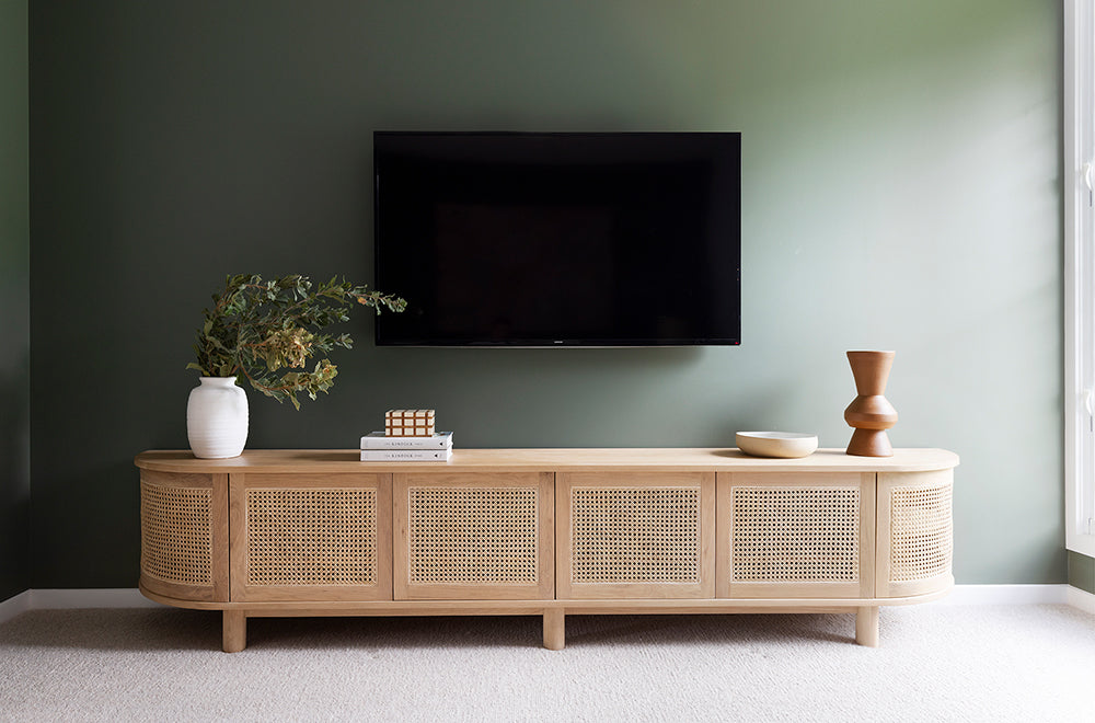 A handsome addition to any living space is our Luca TV Media Unit. With its curved features and cane door inserts adding character, you'll be able to connect to all your media devices with ease.