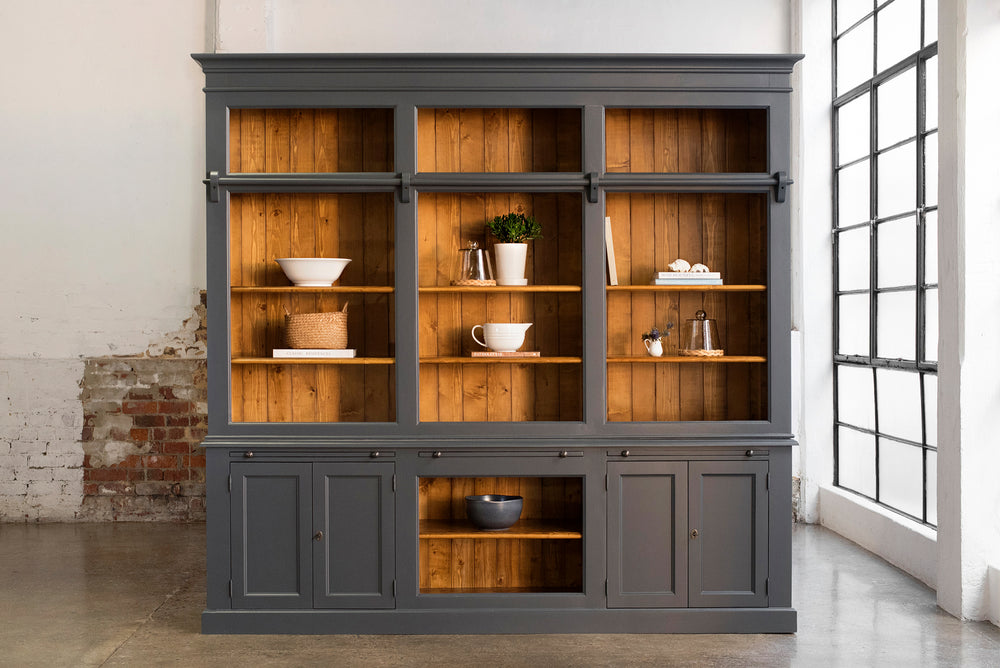 An elegant addition to your home that will be the envy of all your guests. Our two-tone Grand Newport library will help keep things looking polished and in place. With a timeless style and grand presence, this piece will work beautifully in an office, living, or dining room.