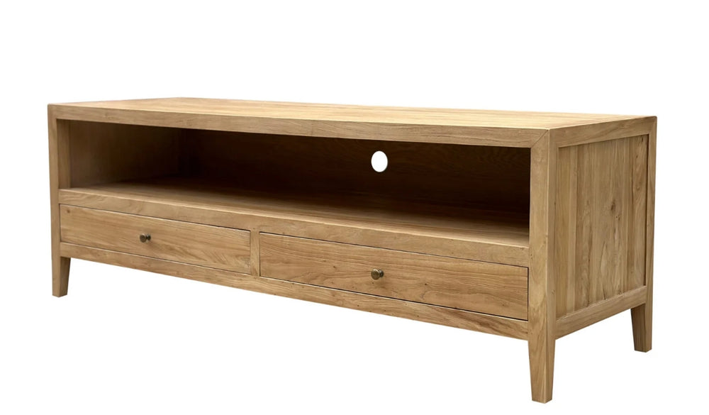 The Easton TV Media Unit boasts a sleek and modern design with tapered legs for a timeless look. This unit offers a streamlined appearance while providing a sturdy platform for your TV, creating a contemporary and versatile addition to your living space.
