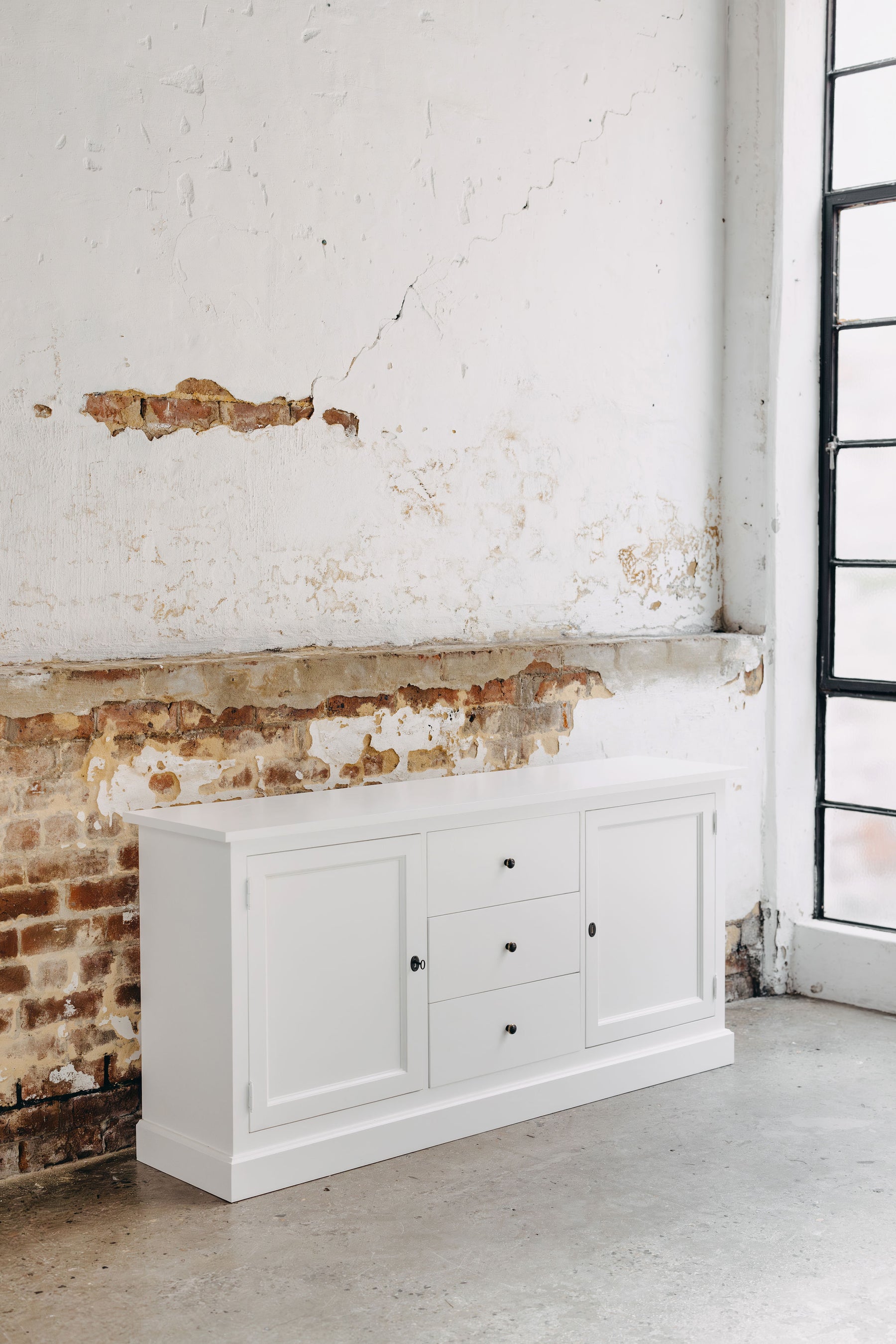 The New England Buffet provides a classic and traditional look that is sure to add a sense of timelessness to any interior. It features an English-style design with cupboard and drawer storage options, perfect for organizing your home. With its Polar White finish, the stylish New England Buffet will make a striking addition to any home.