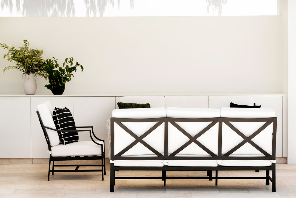 Dreaming of an Italian oasis in your own backyard? Make it a reality with the stunning Portofino Outdoor Lounge Set. This monochrome collection features scooped arms with a distinctive X-braced curved back for ultimate comfort as you relax in paradise.
