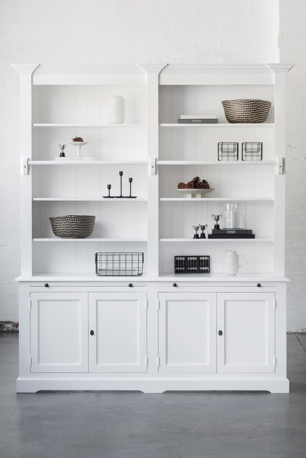 Upgrade your home with the timeless and grand Newport Library Bookcase in Polar White. Perfect for offices, living rooms, and dining rooms, this elegant piece will keep your space organized and stylish. The crisp white color adds a refreshing touch to any interior space.