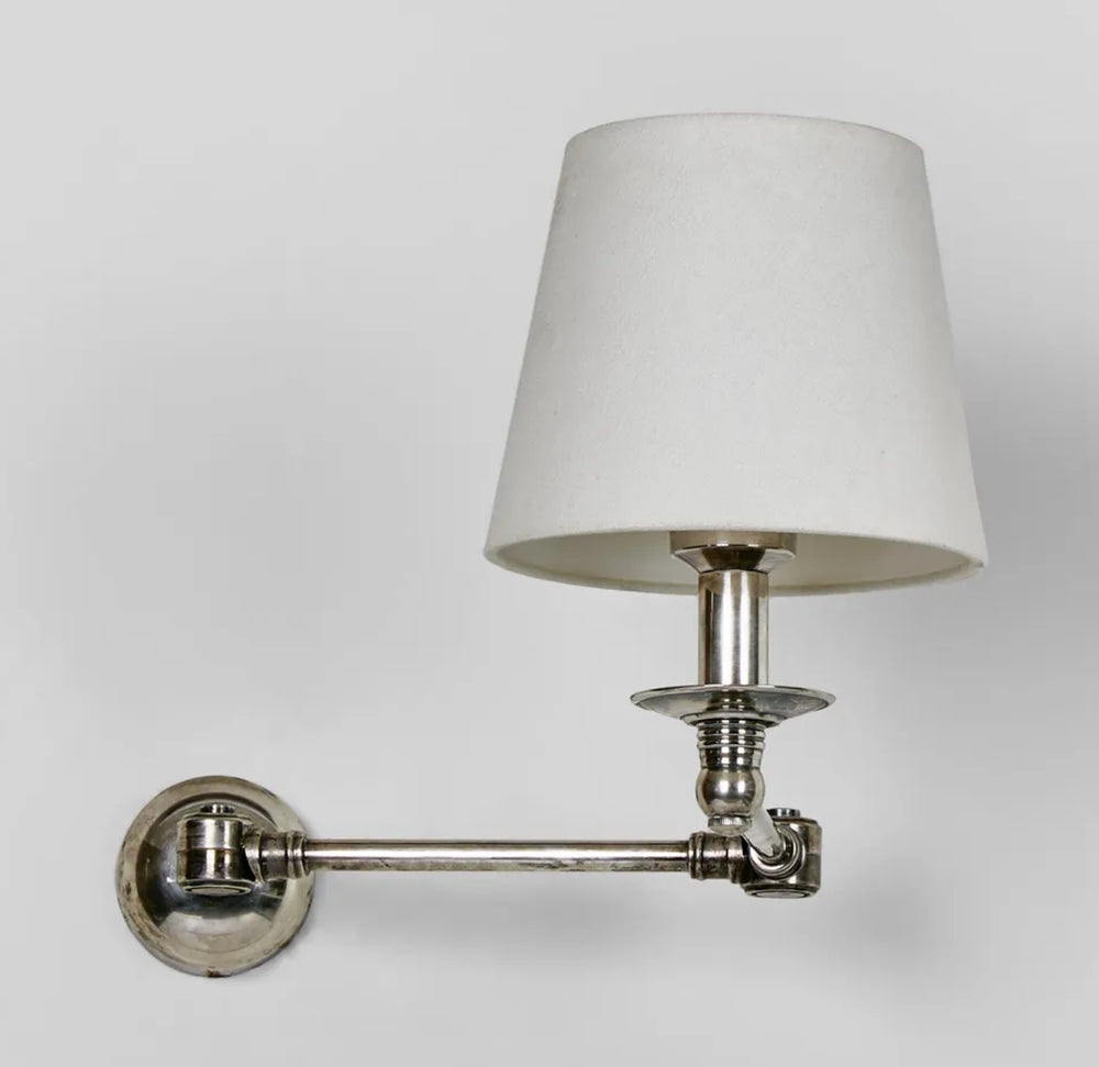 Introducing the Cape Sconce in Antique Silver, our industrial swing-arm wall light in a rich, authentic aged look. With a round backplate and swing arm, this functional and attractive light adds warmth to any bedside or seating area.