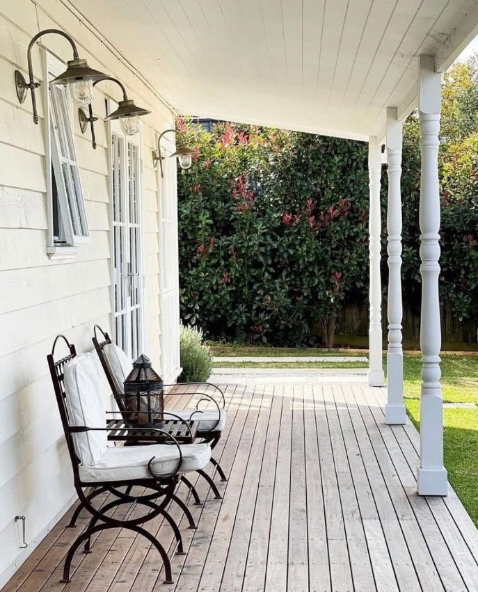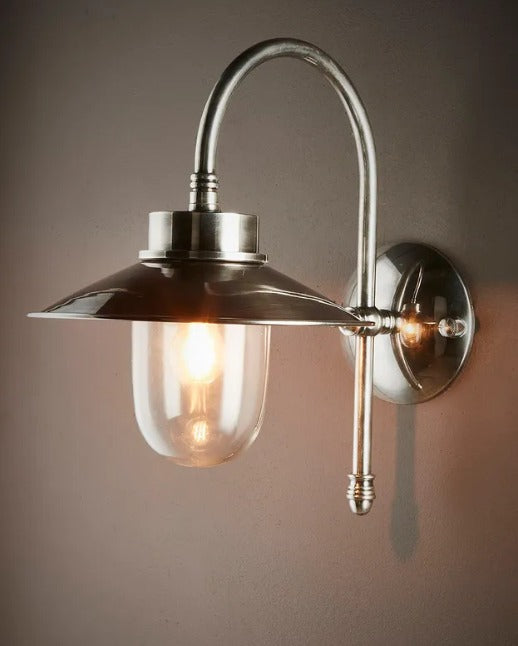 Our Gateway Outdoor Wall Light is the perfect choice for both indoor and outdoor uses. Its metal cage and clear glass enclosure house a standard bulb or antique-style filament that give off a soft vintage glow. Its sleek, caged design is perfect for illuminating gardens, patios, entryways, and even bathrooms.