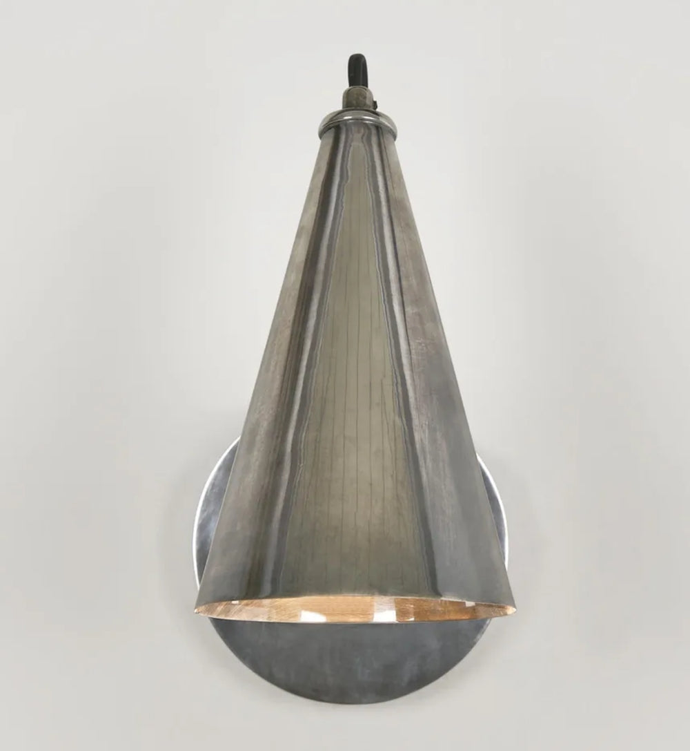 Introducing the Lumen Sconce in Antique Silver. This industrial wall spotlight features an adjustable arm, perfect for use as a reading light or for highlighting artwork and menus. Made with solid brass and a rust-resistant finish, it's a durable and versatile addition to any space.
