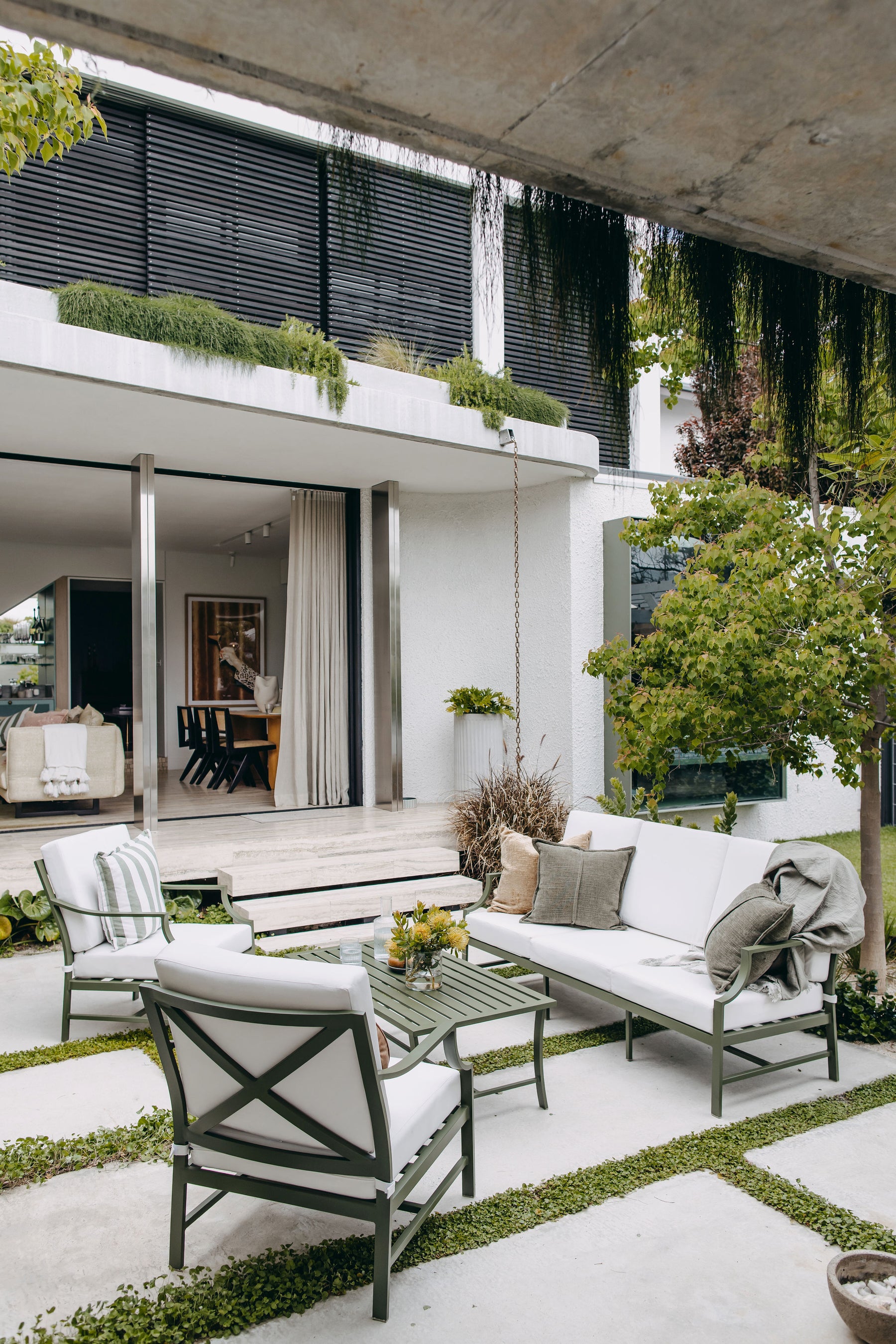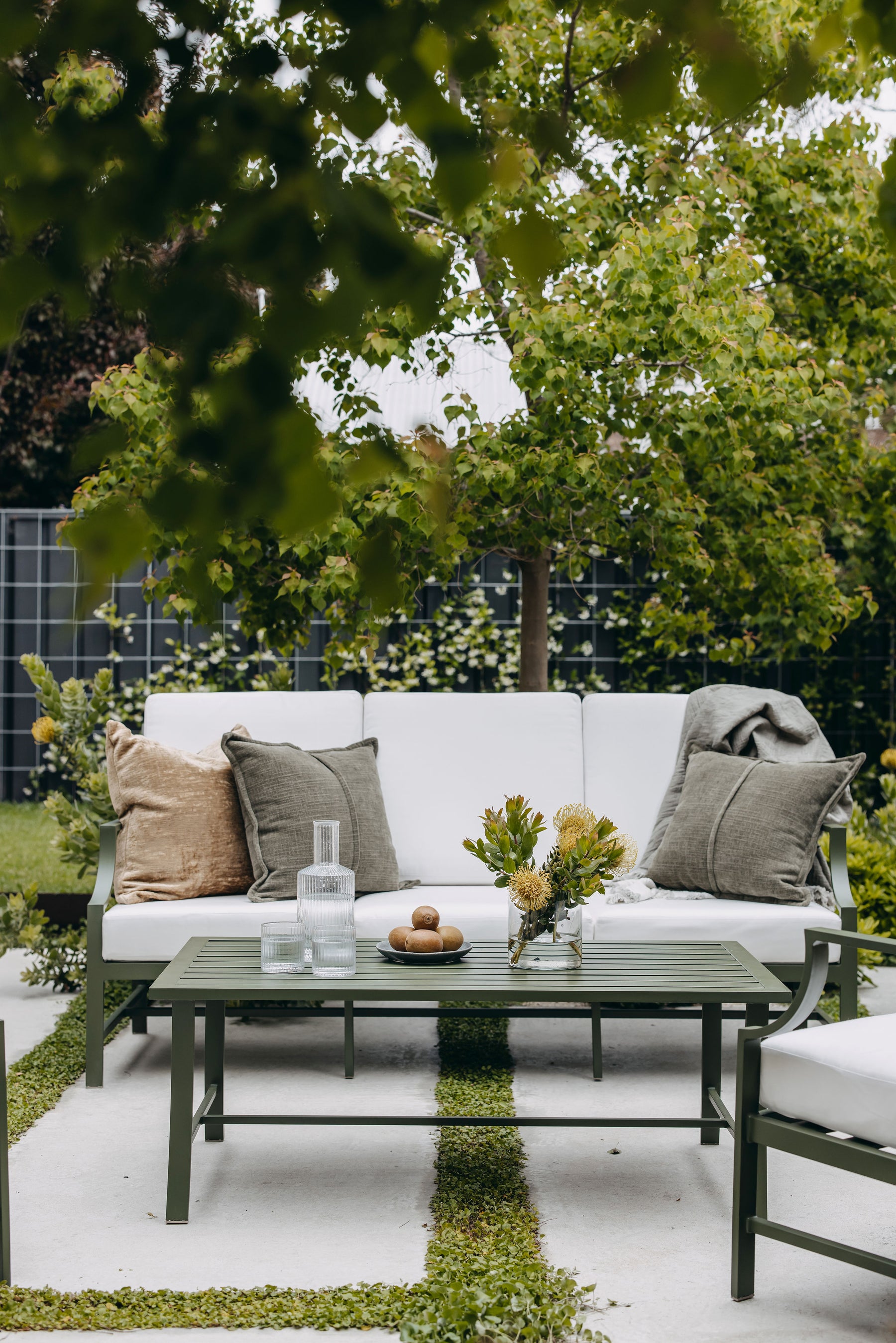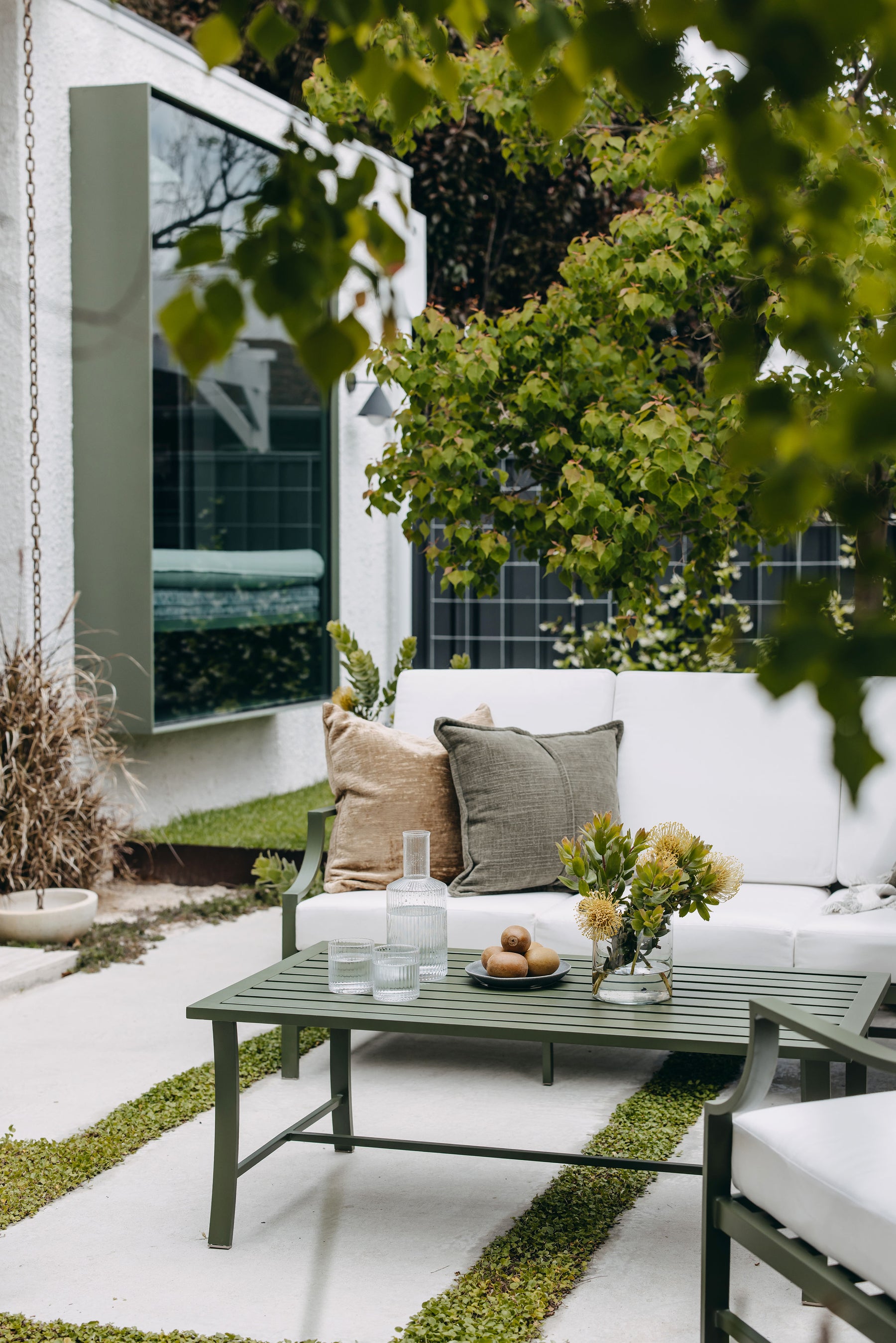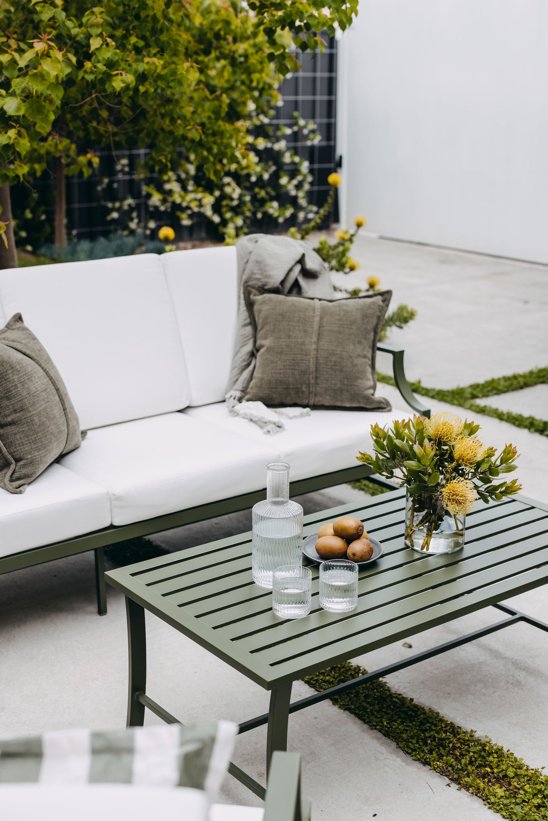 Create a European-inspired escape in your outdoor space with the Portofino Outdoor Lounge Set. Featuring scooped arms and a graceful cross-back design, it combines timeless form with effortless comfort — ideal for slow, sunlit days.