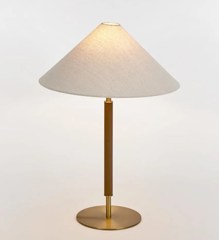 The Sonoma Leather & Brass Table Lamp brings refined elegance to any space with its warm brushed brass finish and rich leather-look wrap. Topped with a tailored tapered linen shade, this lamp seamlessly blends classic materials with a contemporary silhouette. Its timeless design and luxurious details make it a striking statement piece for both traditional and modern interiors.